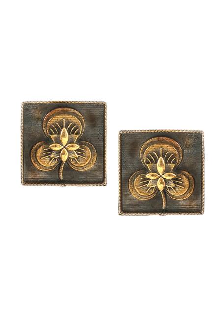Buy_Palace Of Silver_Gold Plated Floral Pattern Round Ear Studs_at_Aza_Fashions