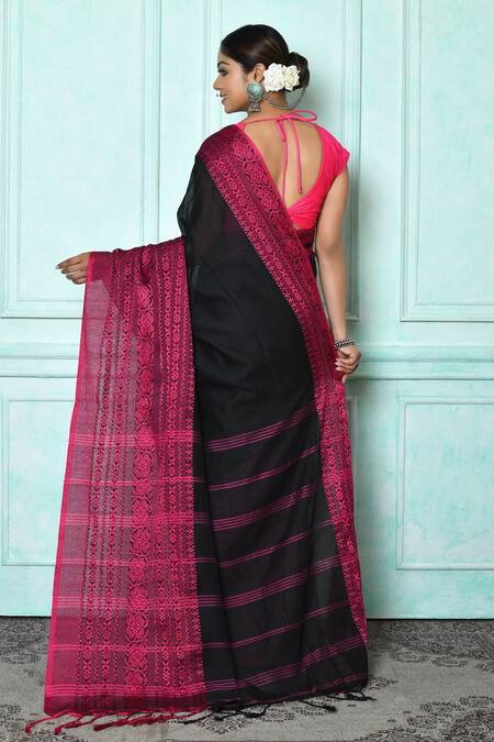 Buy_Adara Khan_Black Pure Cotton Woven Jamdani Floret Saree_Online_at_Aza_Fashions