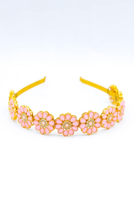 Foot Fuel_Gold Crystals, Beads Embellished Hairband _Online_at_Aza_Fashions