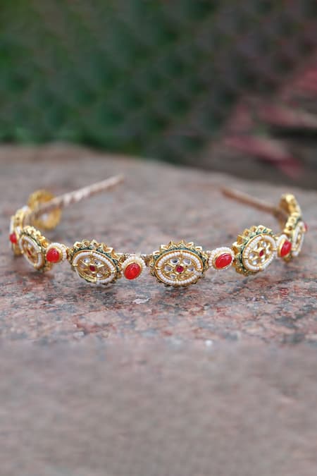 Gold Beads, Brooches Stone Studded Enamelled Hairband