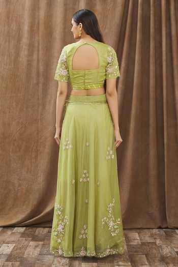 Green Moda Silk And Organza Sequin, Thread & Floral Embroidered Lehenga Set