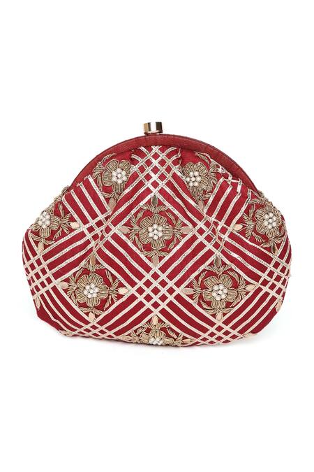 Red Zardozi And Pitta Work Embellished Glu Gota Pouch