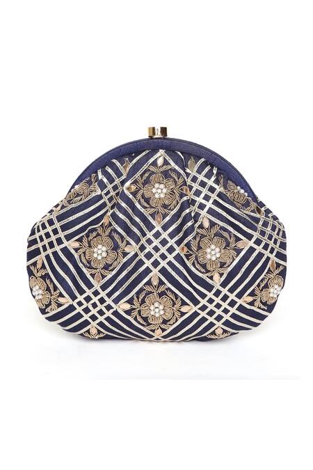 Blue Zardozi And Gota Patti Work Embellished Glu Pouch