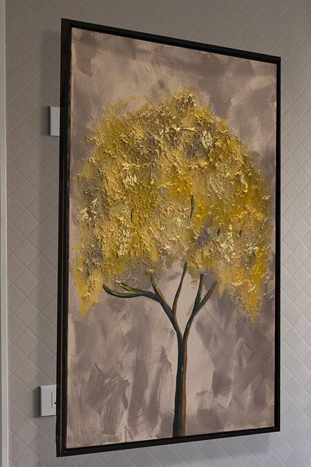 Buy_H2h_Yellow Canvas Textured Autumn Tree Painting_at_Aza_Fashions