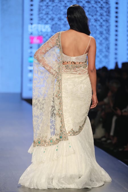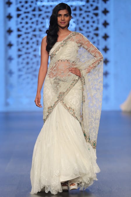 Off White Hand Embroidered Lehenga Saree