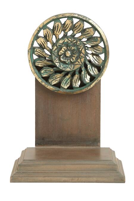 Green Mango Wood And Brass Hand Carved Painted- Distress Chakra Wall Decor