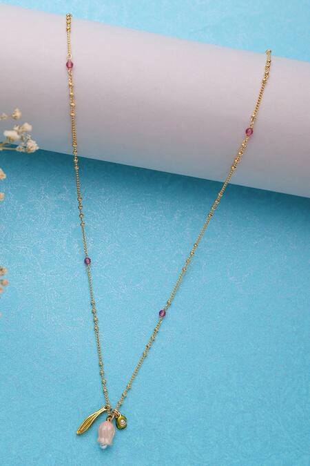 18k gold plated necklace with hand painted floral motif drop.