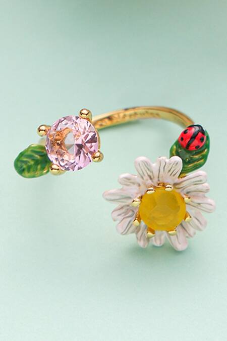 Floral & lady bird motif, Stone encrusted, Adjustable, Size (cms): L x W: 2 x 3, Weight (gms): 5