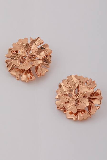 Gold Plated Cut Work Handcrafted Floral Statement Studs