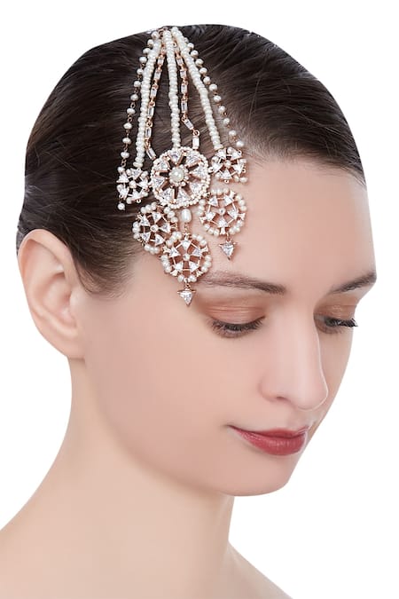 Ornate arrangement of Swarovski crystals, Tiny luminous pearls detailing, Handcrafted design with intricate patterns