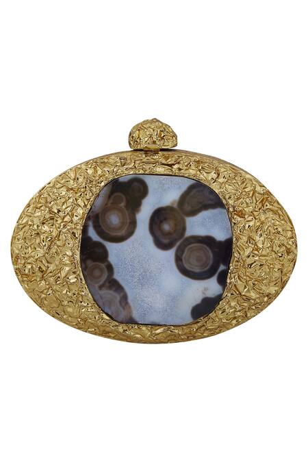 Buy_Be Chic_Gold Stone Handcrafted Metal Clutch_at_Aza_Fashions