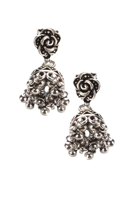 Buy_Sangeeta Boochra_Silver Plated Cut Work Handmade Floral Jhumkas _Online_at_Aza_Fashions