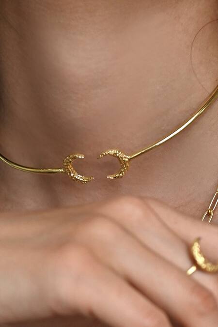Buy_The Loom Art_Gold Plated Hollow Moon Choker_at_Aza_Fashions