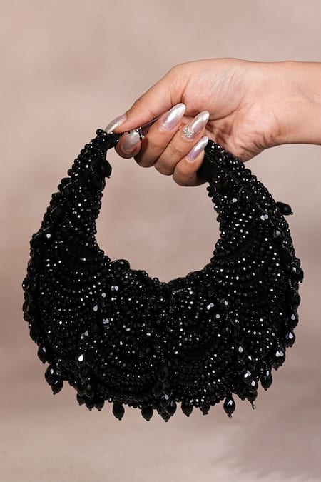 Black Beads Liona Suede Embellished Hobo Bag