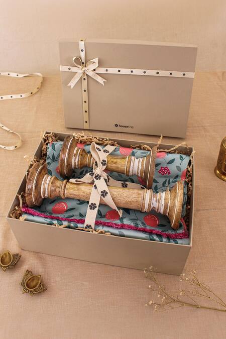 Brown Wood Deheri Candle Stand And Table Runner Gift Box Set