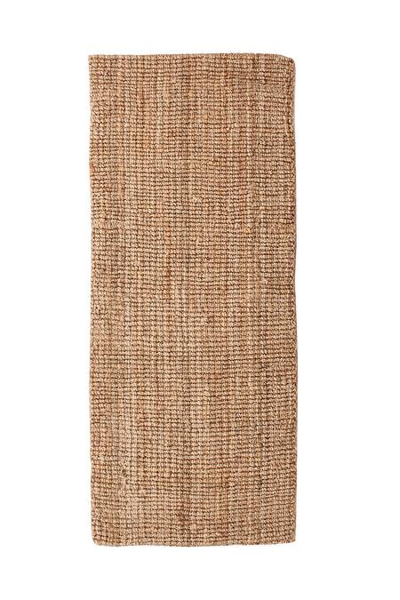 Natural rectangle shaped rug in jute base with tufted pattern.
