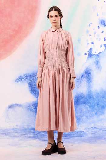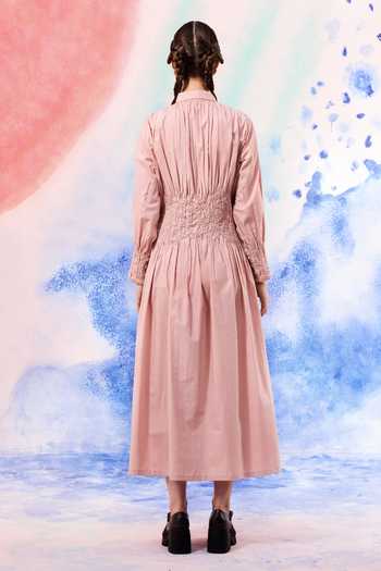 Blush Poplin Embroidery Collared Otter Midi Dress