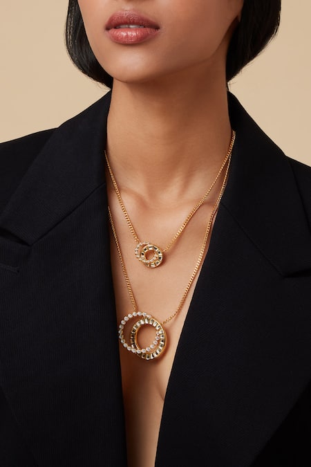 Buy_Isharya_Gold Plated Emerge Rings Pendant Long Necklace_at_Aza_Fashions