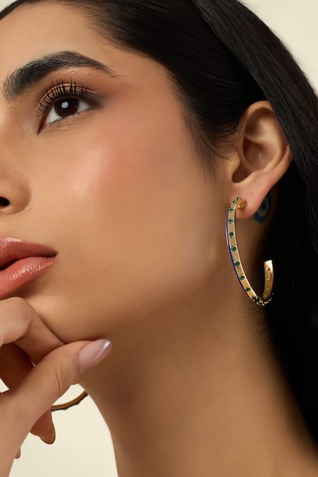 Gold Plated Zari Luna Luxe Enamel Hoop Earrings