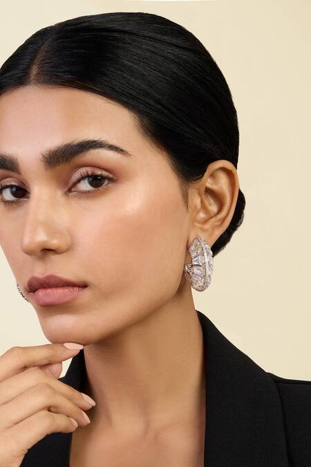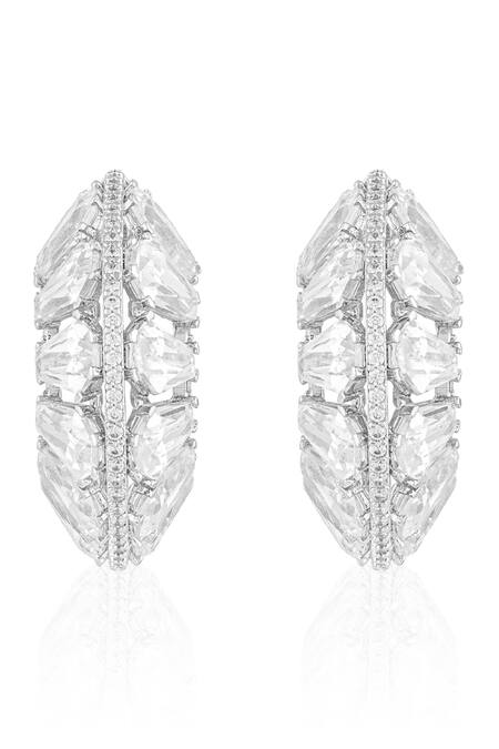 Rhodium plating for enhanced shine, Cubic zirconia stones in unique cuts, Push pin closure for easy wear