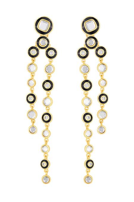 Multi Color Mirrors, Cut Work, Crystals Savage Line Drop Earrings
