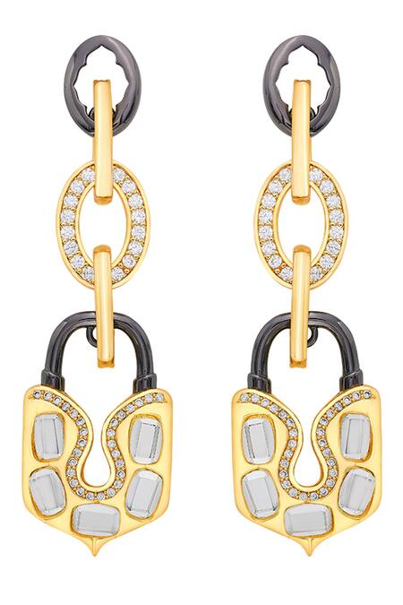18Kt gold plated drop earrings with rhodium finish and cubic zirconia stones.