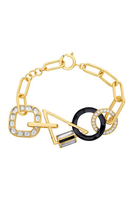 Buy_Isharya_Gold Plated Mirror, Cubic Zirconia Stan Abstract Link Bracelet - Single Pc_at_Aza_Fashions