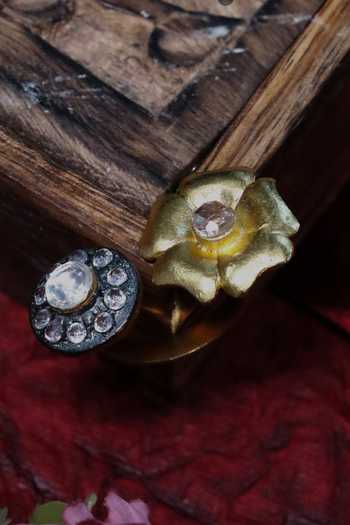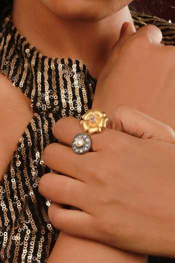 Gold Plated Embroidery Stone Embellished Open Ring