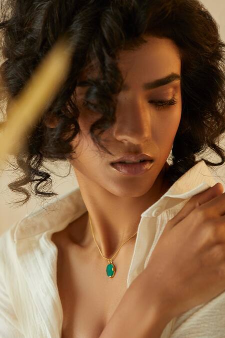 1 micron gold, 18kt gold plated necklace with green emerald stone pendant.