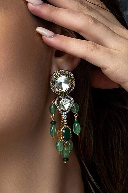 Green Diamonds, Stones Jade Tumbles And Polki Embellished Danglers