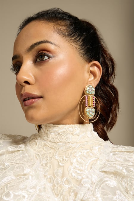 Gold Plated Stones Reverie Frame Embellished Earrings