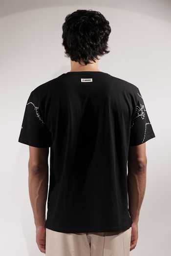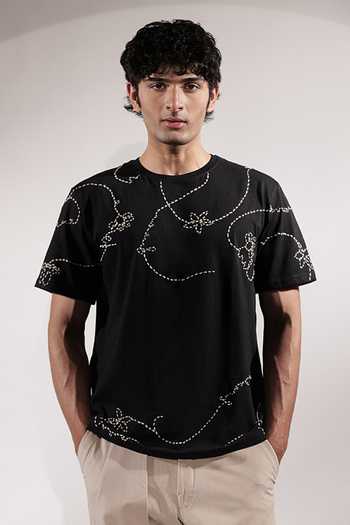 Black 100% Cotton T-shirt with white Kantha embroidery.