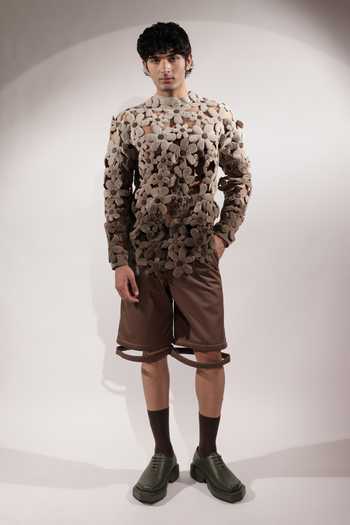 Brown Leatherette Levitating Effect Tailored Shorts