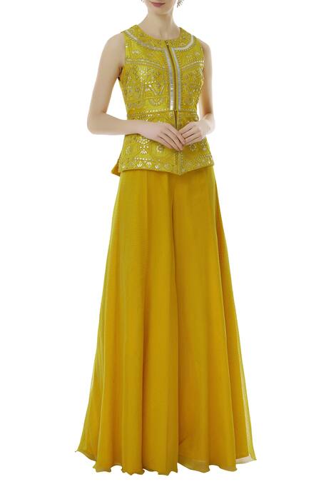 Buy_Yashodhara_Yellow Chiffon Jumpsuit With Embellished Jacket_Online_at_Aza_Fashions
