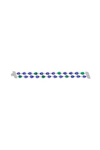 Embellished with full cut diamonds, Features tanzanite and Zambian emerald, Box lock closure for secure fit