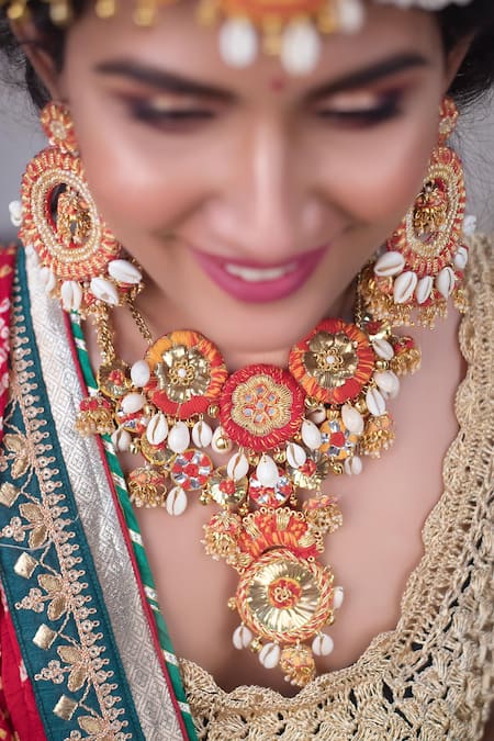 Kanyaadhan By Dhirajaayushi Red Shell Embroidered Necklace