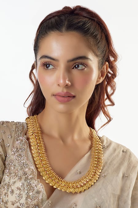 Gold plated Goddess Laxmi coin carved necklace made from 925 silver