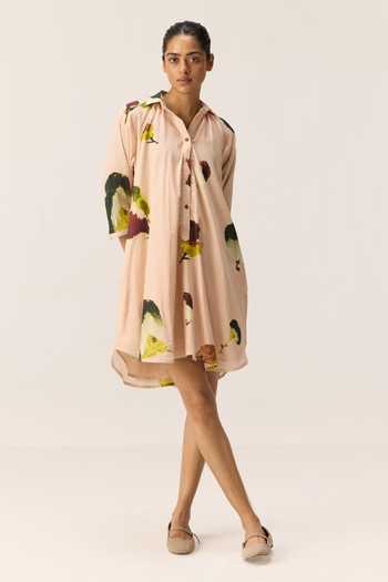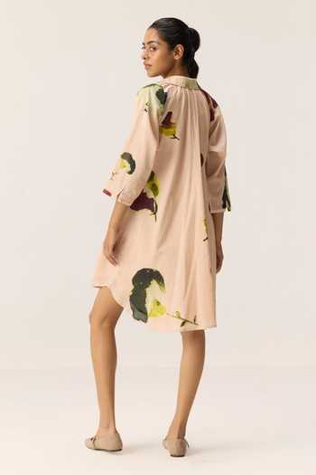 Peach Muslin (mulmul) Collared Blush Tide Print Dress