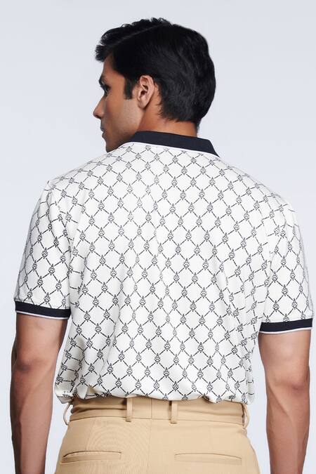 Off white printed polo T-shirt in knitted fabric base with crest patchwork detail.