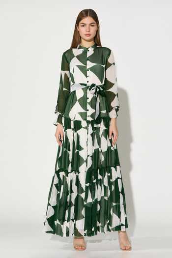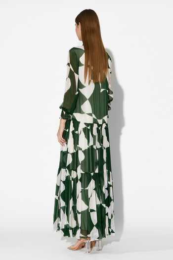 Green and white abstract long dress