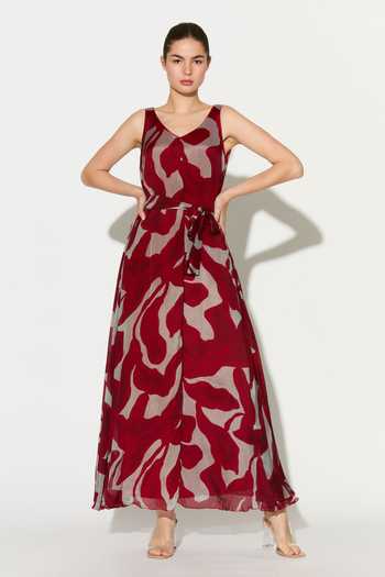 Sleeveless V-neck, Maxi length, Abstract floral print
