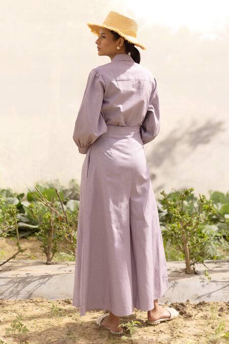 Purple Cotton Checks Shirt Collar Zoe Checkered Pattern With Pant
