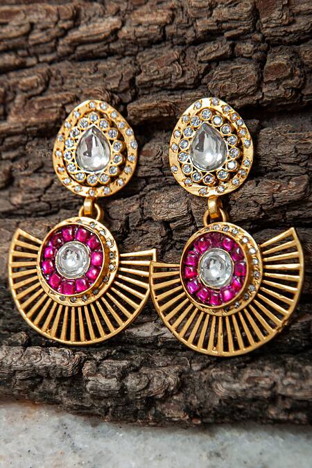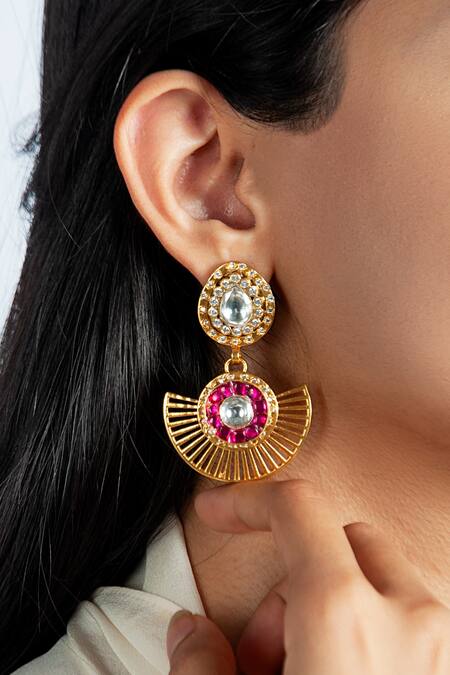 925 sterling silver & 22K gold plated earrings with whit, pink kundan & cubic zirconia embellishments.