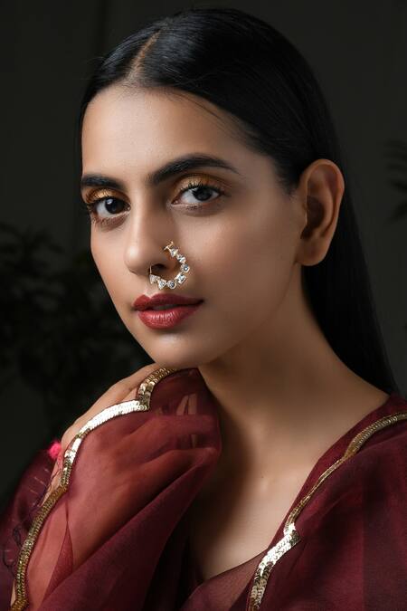 Shop_Paisley Pop_Gold Plated Kundan Nose Ring_at_Aza_Fashions