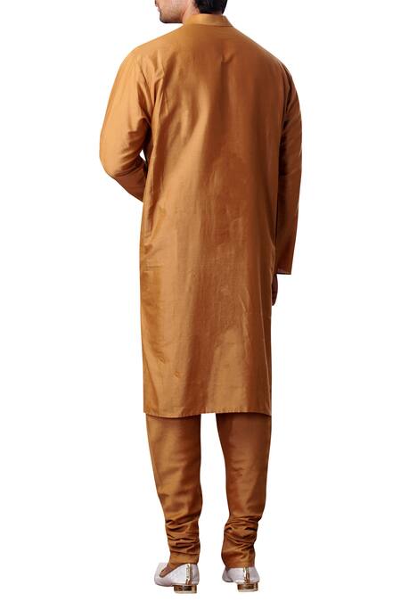 This versatile and flattering mustard yellow makes for a captivating silhouette with this slit kurta with churidar pants.