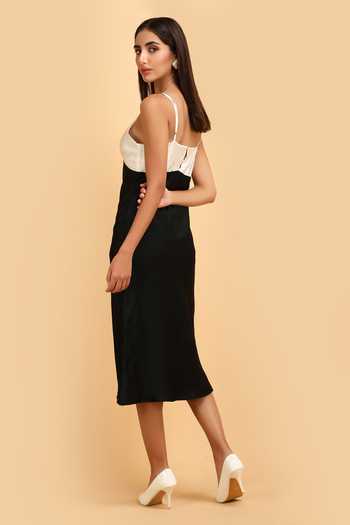 Buy_Label Ivish_Black Silk, Satin Plunge Neck Color Block Dress _Online_at_Aza_Fashions