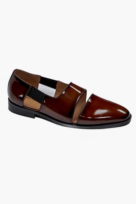 Cut work pattern detailing, Elasticated side bands for comfort, Shiny brush-off leather finish