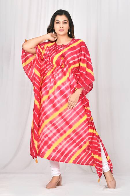 Buy_Naintara Bajaj_Red Leheriya Print Kaftan _Online_at_Aza_Fashions