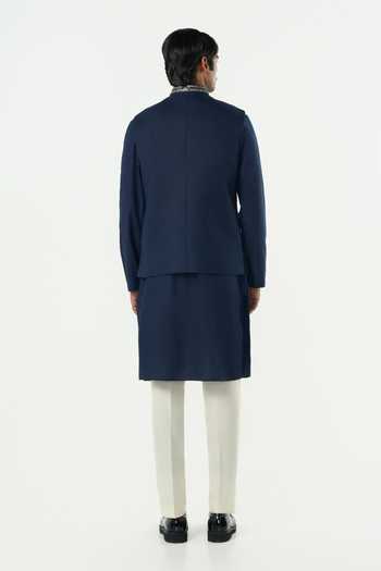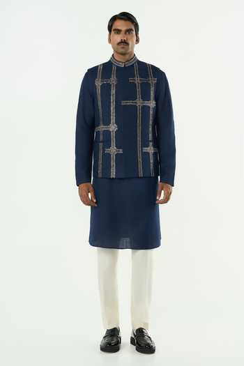 Navy Cotton Beads, Zari Beam Pitta Embroidered Bundi And Kurta Set
