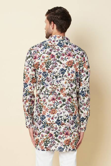 Multicolored kurta with all-over floral digital print, band collar, button placket and full sleeves.